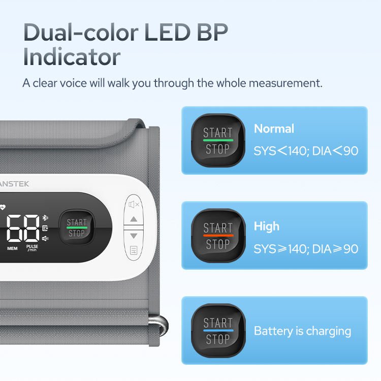 TRANSTEK digital arm blood pressure monitor with LED display, rechargeable battery, and Bluetooth connectivity. Accurate, portable, and easy-to-use device for home and personal health monitoring.